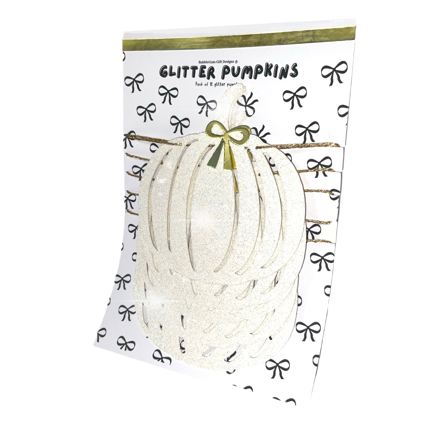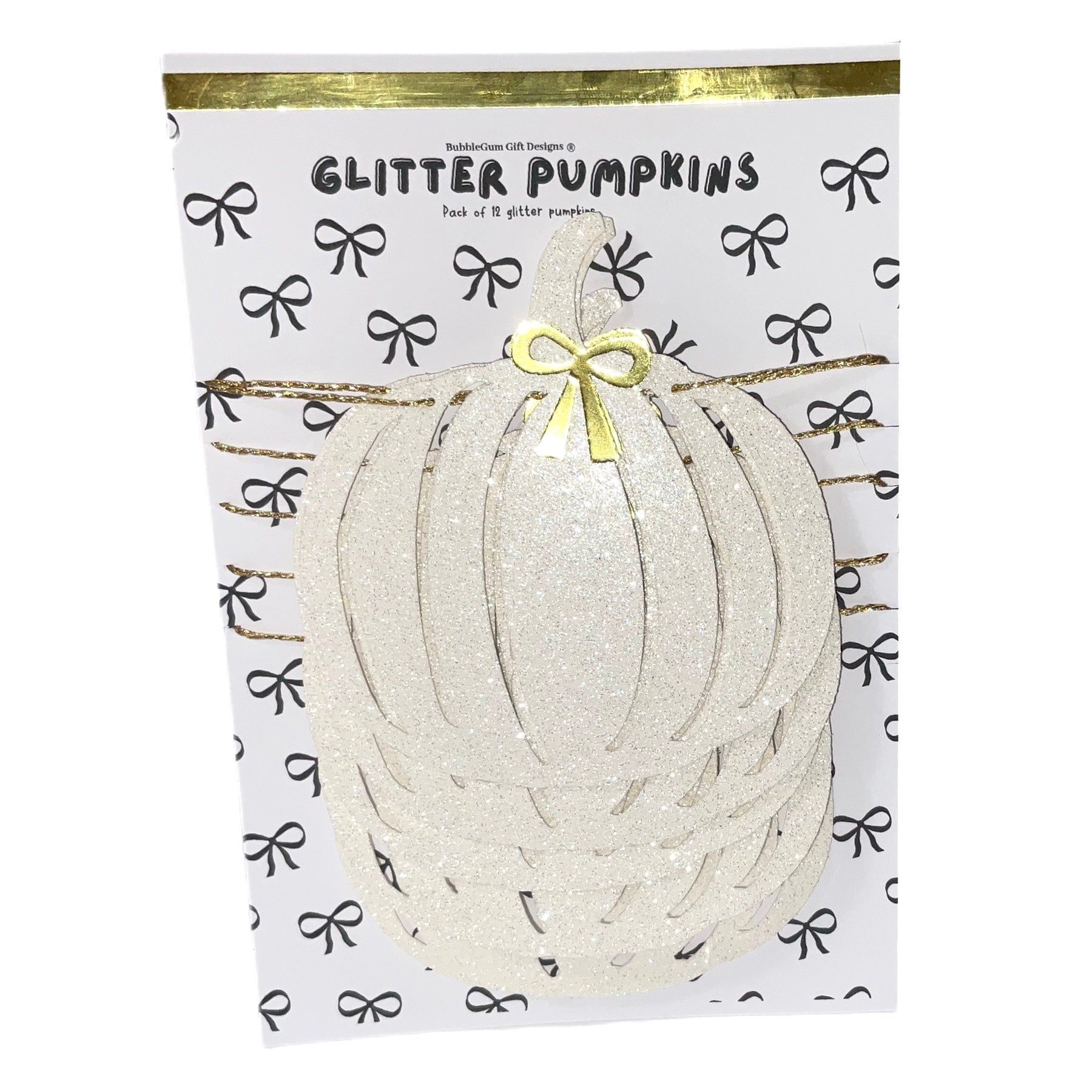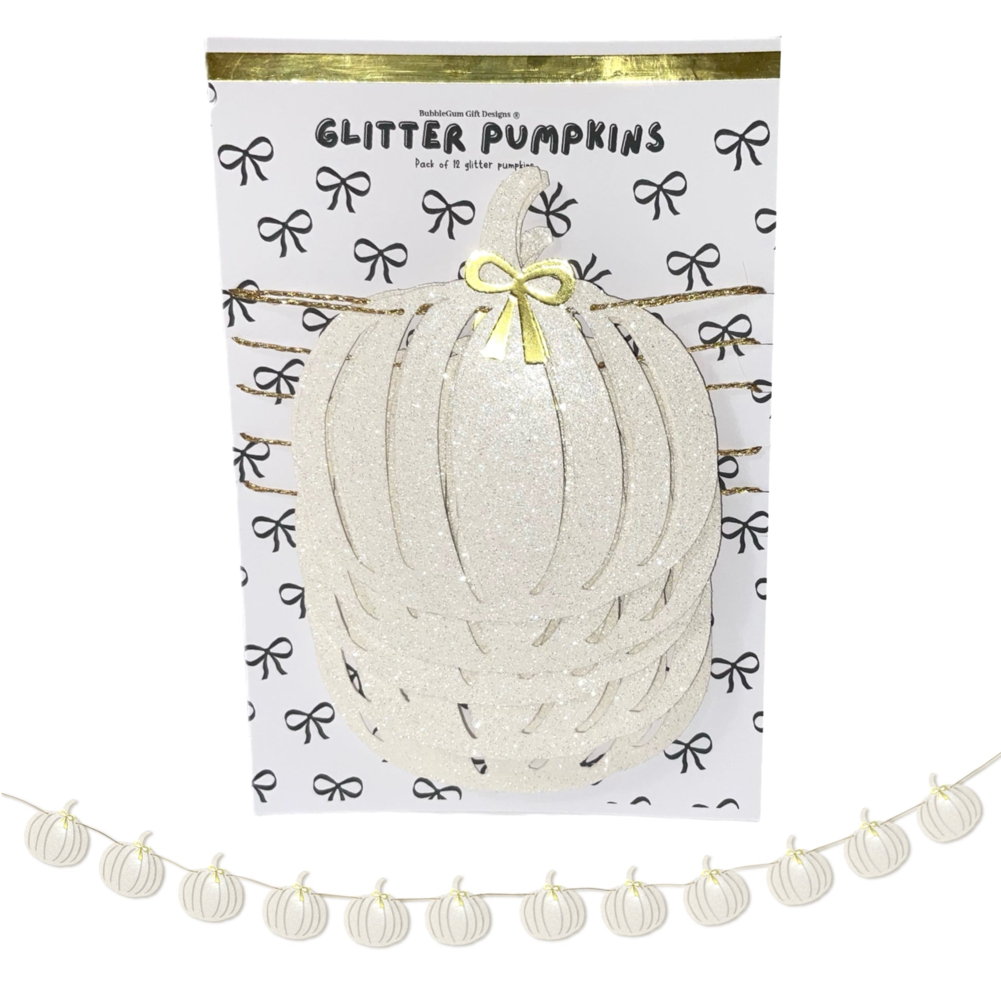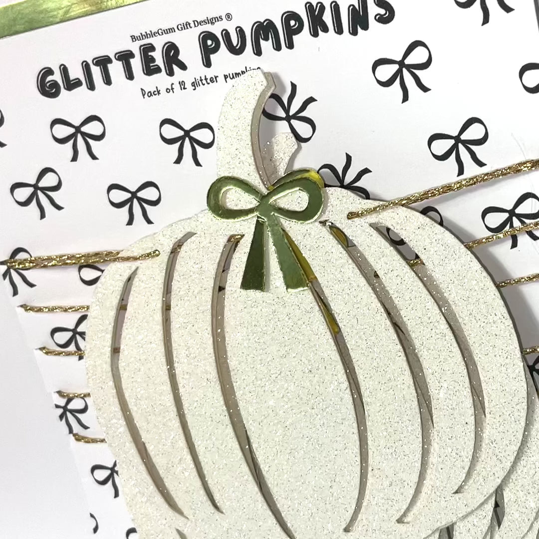 Crafted with care, each pumpkin in this decoration bunting is made from high-quality white glitter card stock, giving off a sparkly shimmer that adds warmth and sparkle without overwhelming your space. The pumpkins are layered with reflective gold accents and finished with dainty gold bows—blending beautifully into modern, minimalist, rustic, or farmhouse interiors. These are truly pretty pumpkins designed to make your home feel festive and chic.