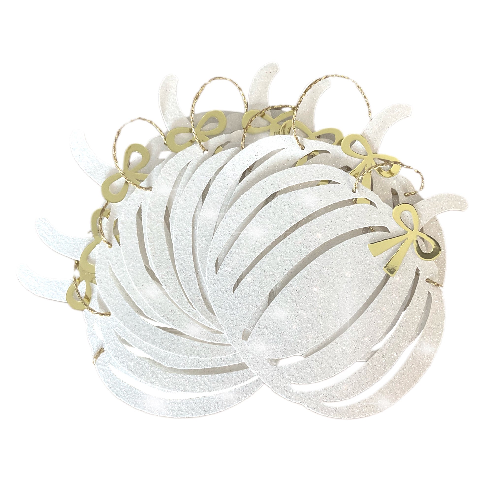 Pack of 12 glitter white pumpkins with gold bows