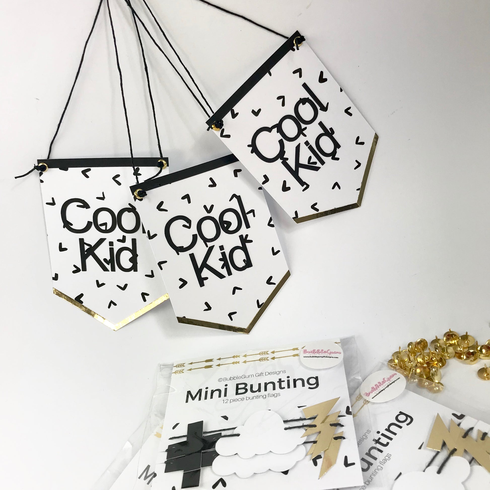 Check out these cute Nordic style Cool Kid banners! Made from high quality 300gsm white card and measuring approximately 12.5cm high (at longest length) and 9cm wide.