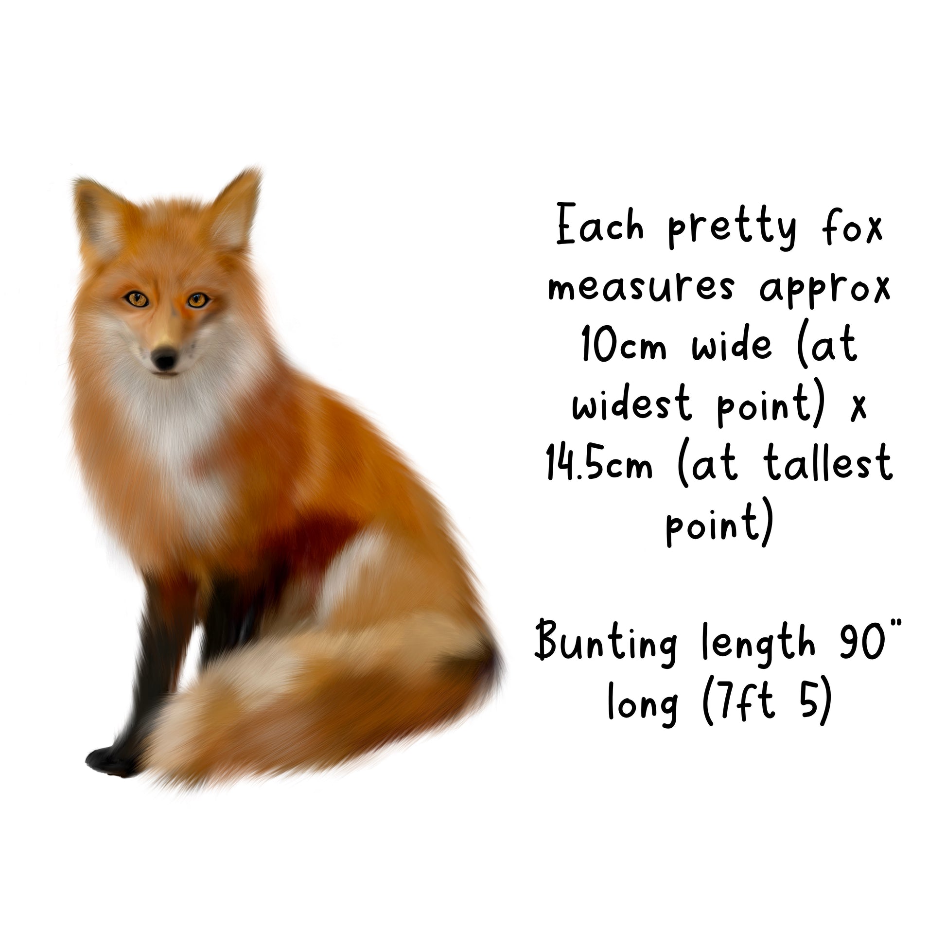 This fox bunting is ideal for fox birthday celebrations and complements a wide range of settings—from dessert tables and photo booth backdrops to nursery walls and reading corners. It also makes a thoughtful gift for fox lovers and fits beautifully with other fox gifts, fox print decor, or animal decorations. Pair it with rustic accents for a stunning autumnal decor touch or use it to add flair to an animal theme party or fox party.