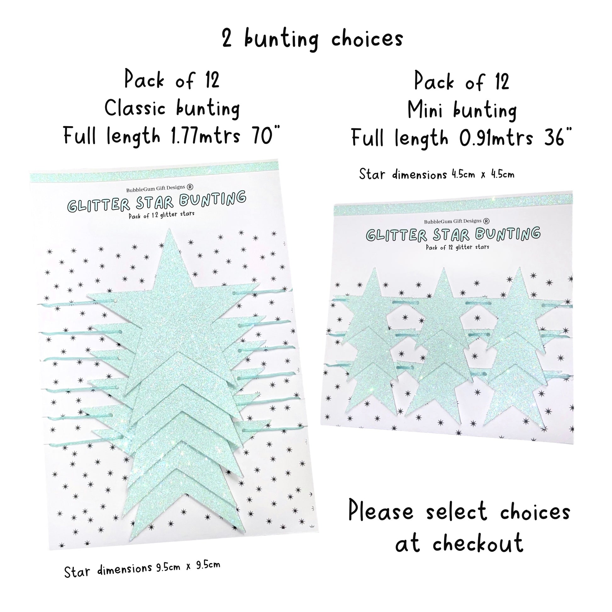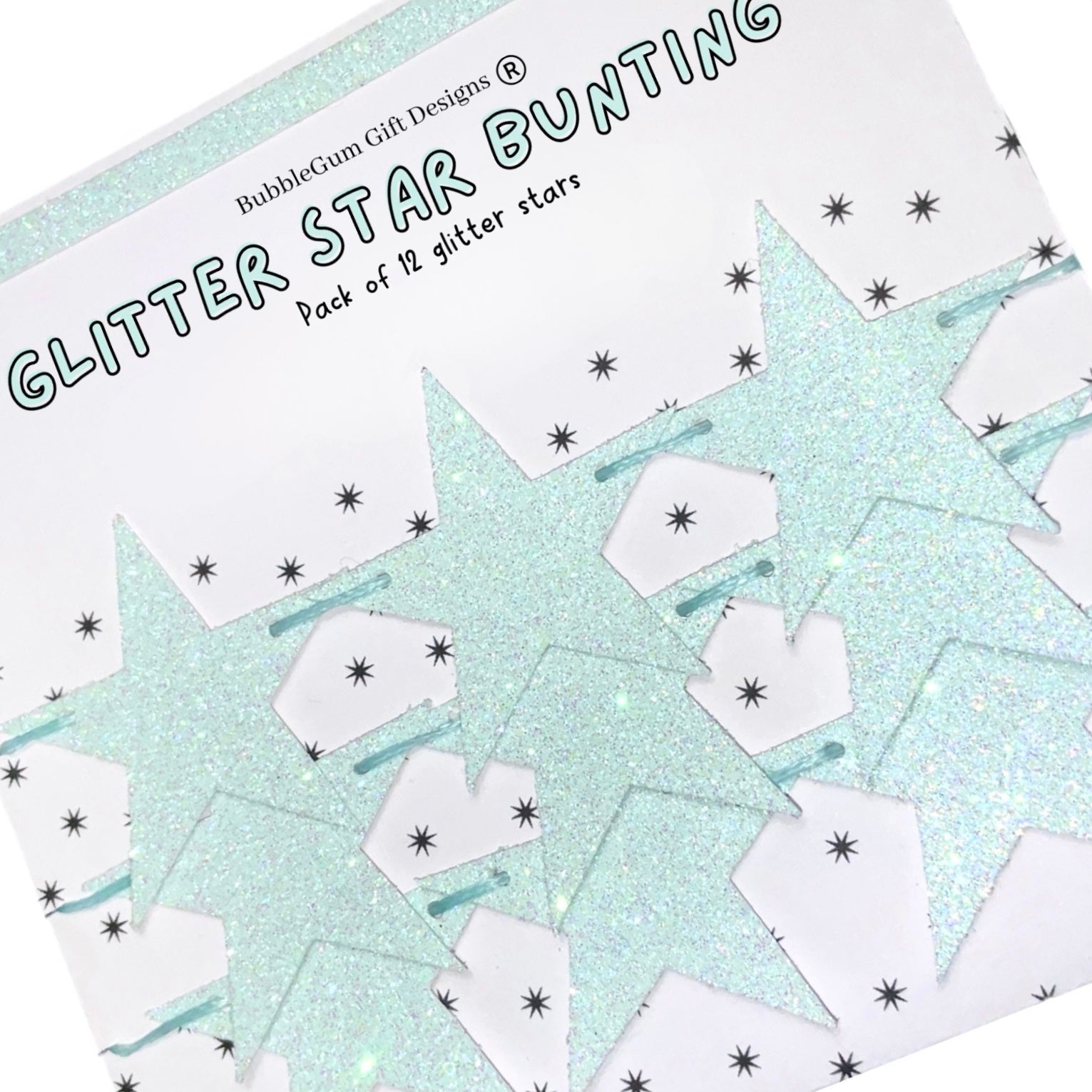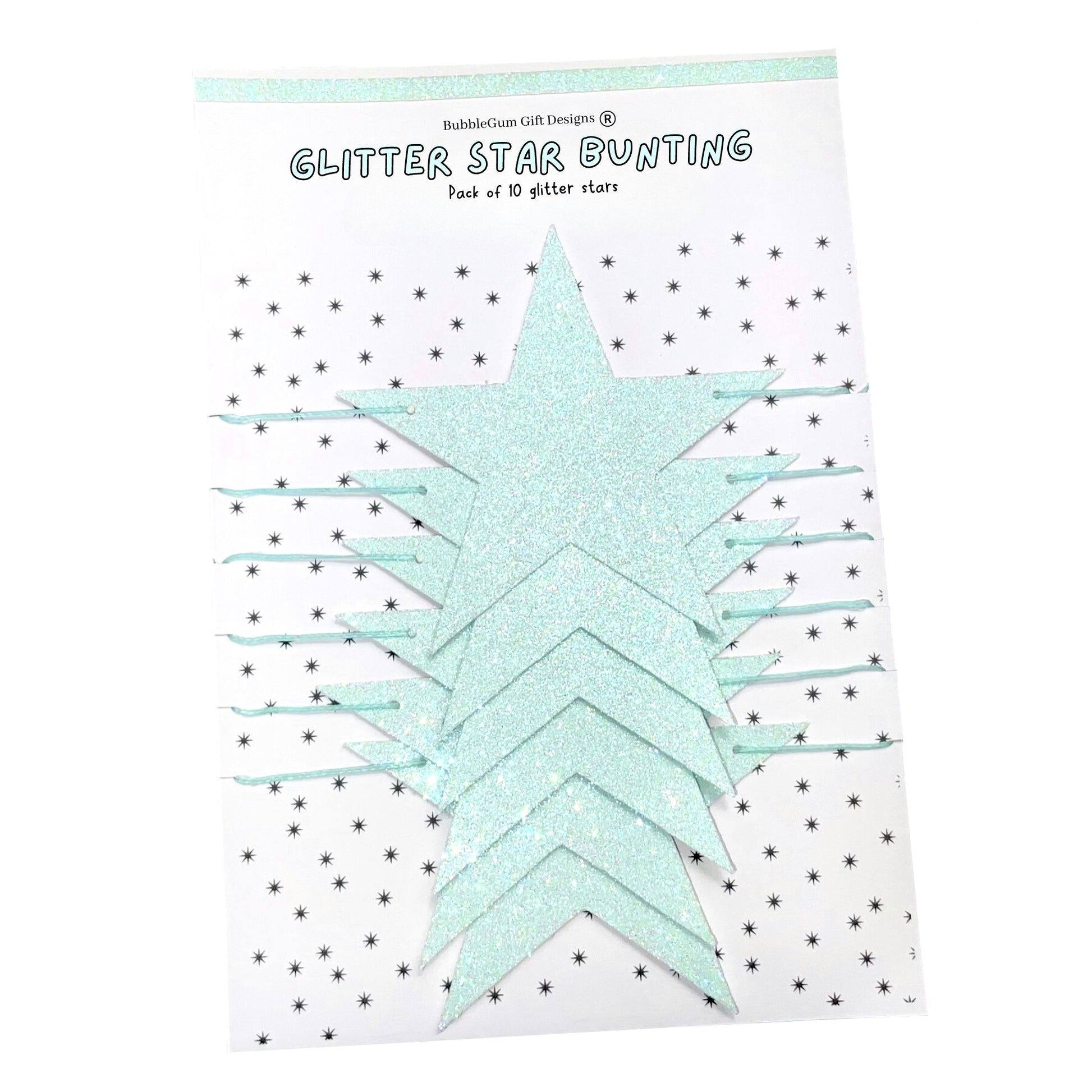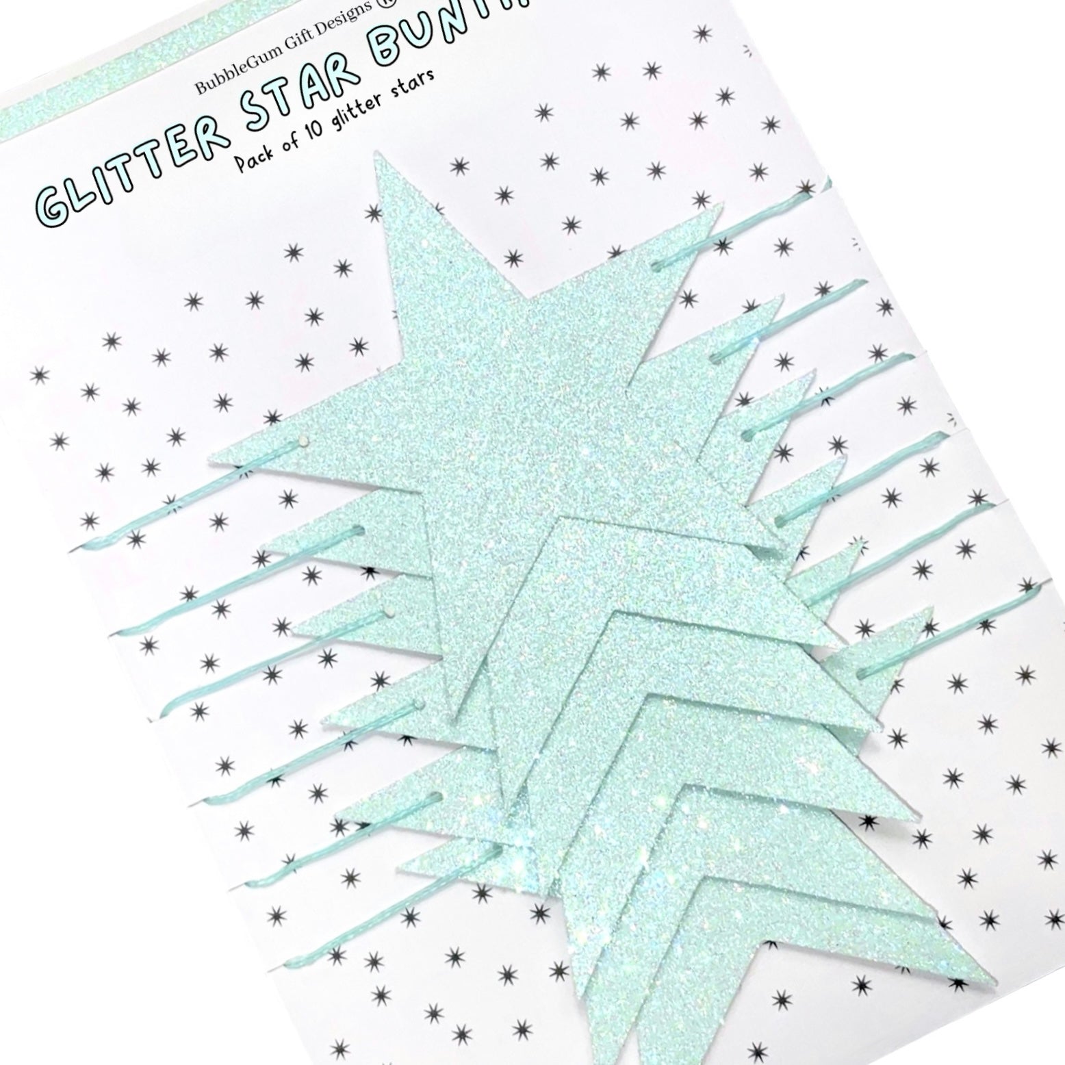 In the most beautiful pale blue, full of total sparkly gorgeousness, these wonderful glitter blue stars are just adorable. Available in two sizes, mini star bunting and standard size star garland.