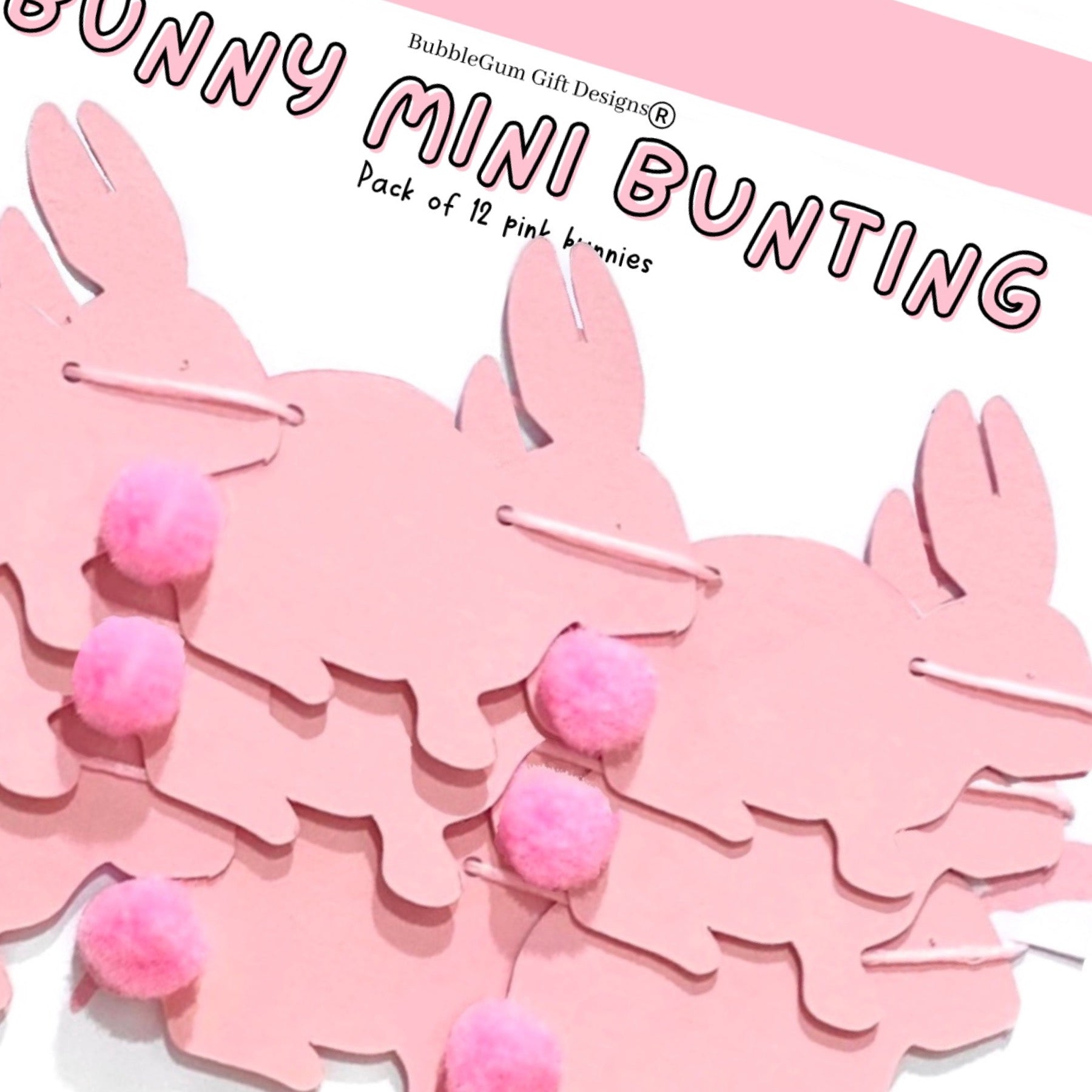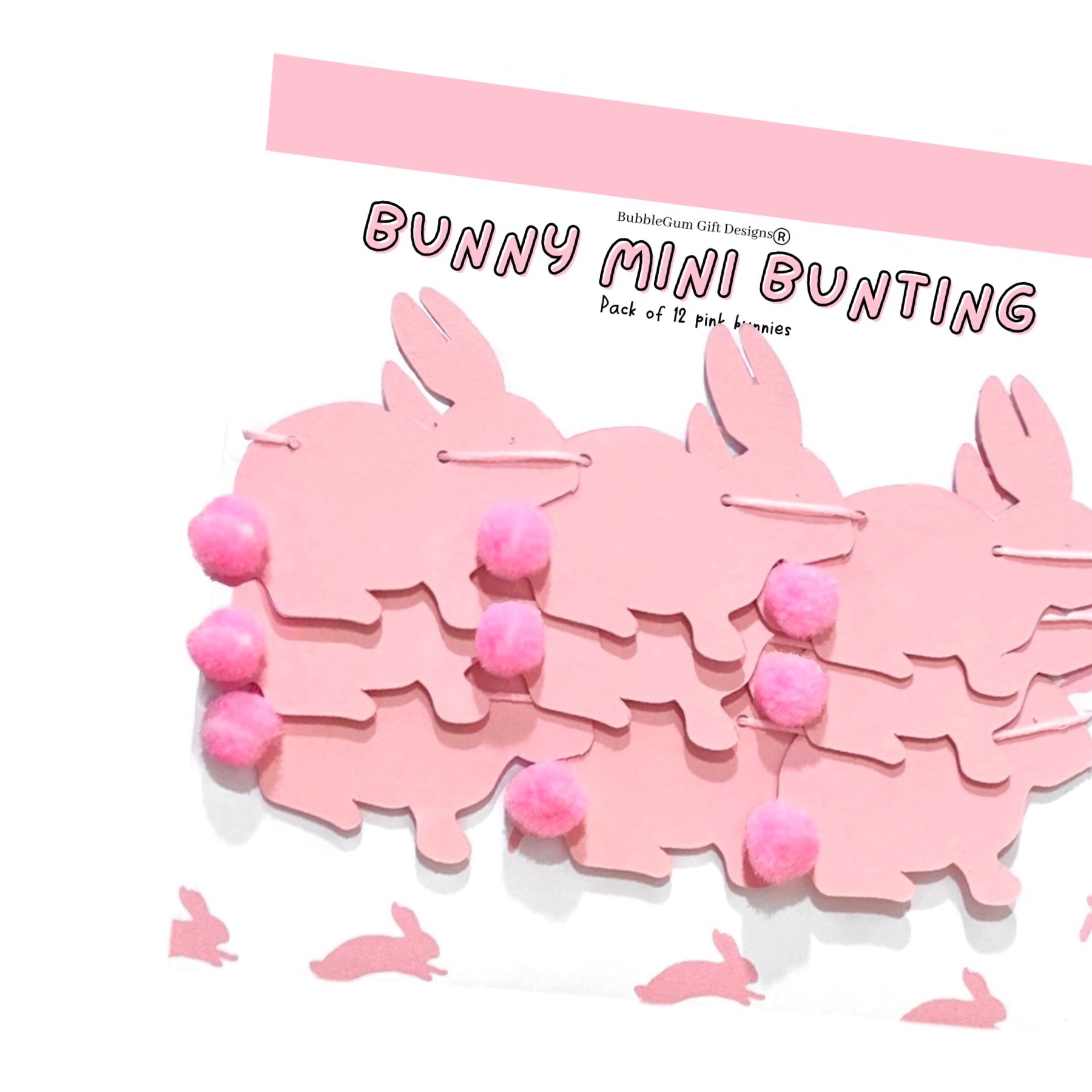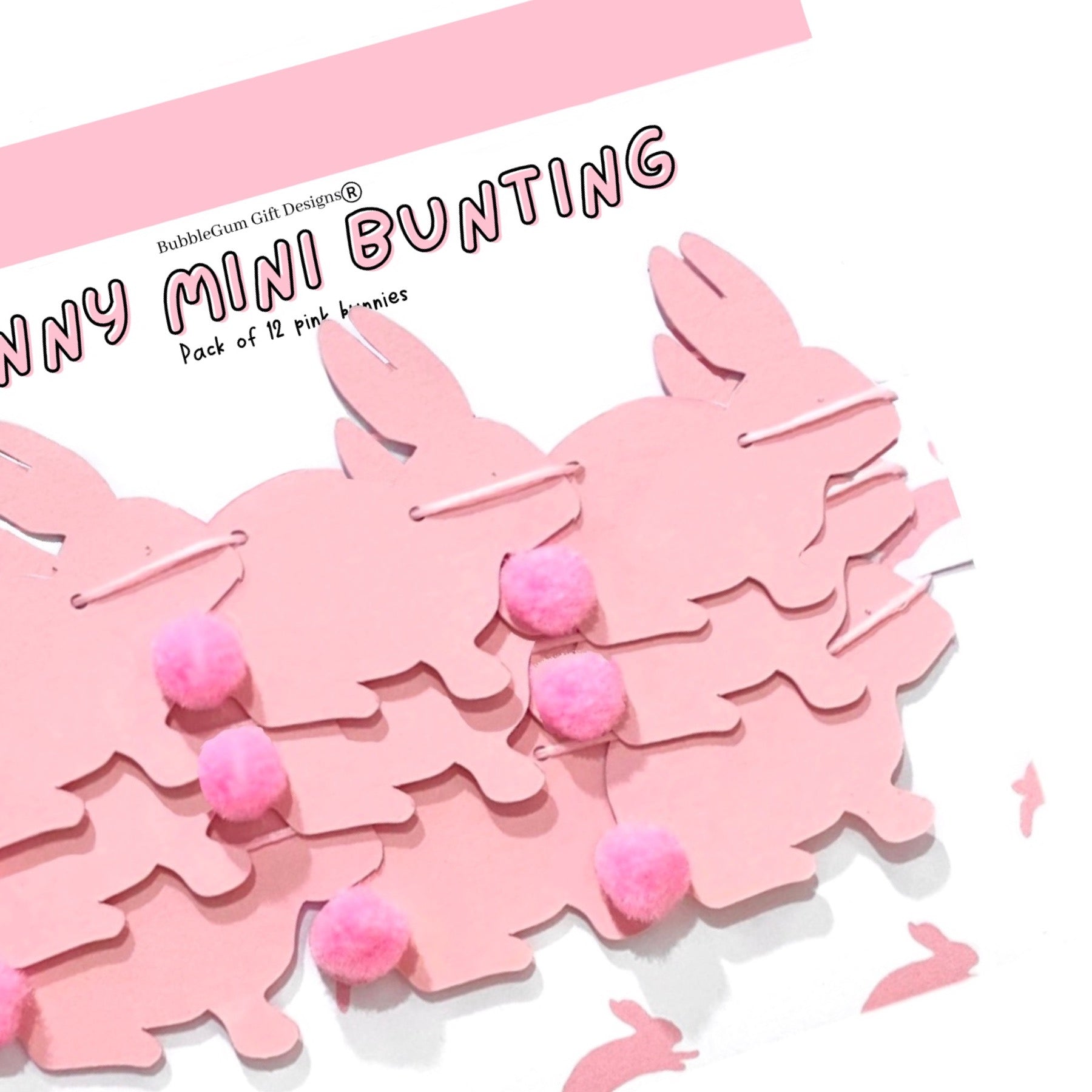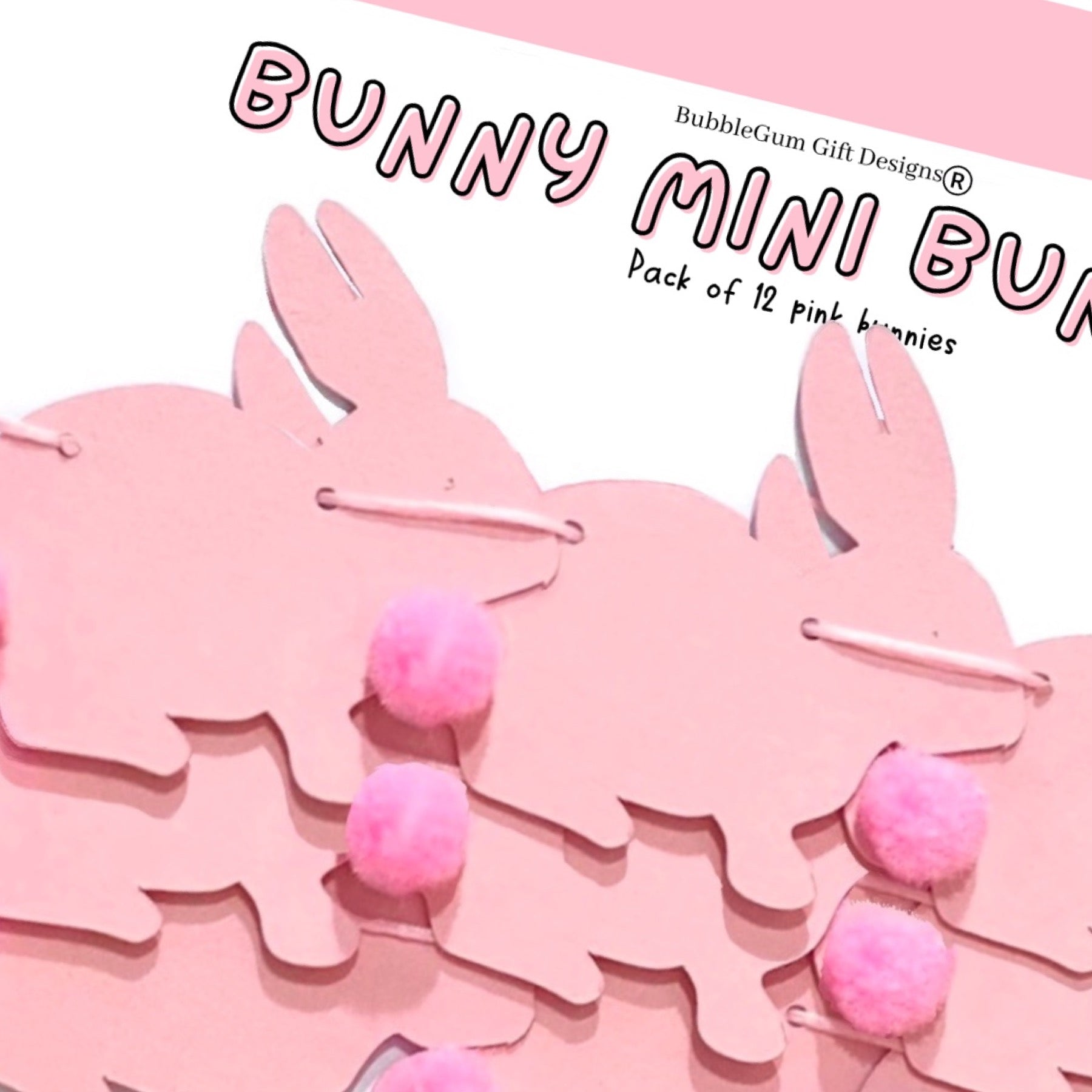 A pack of 12 pink rabbits with cute fluffy pink Pom Pom tails, absolutely gorgeous.