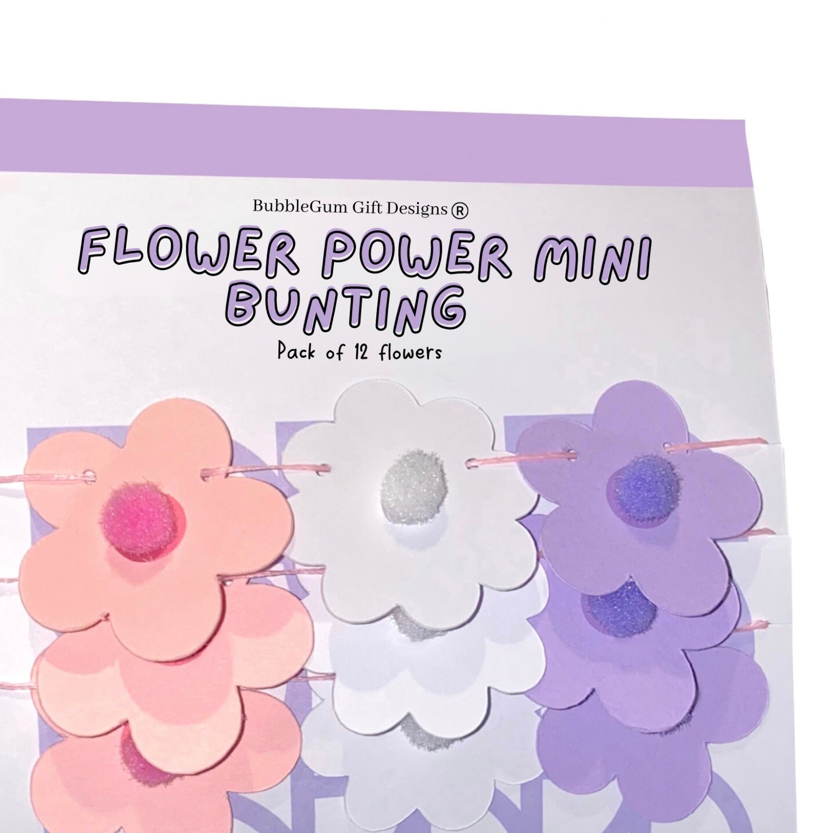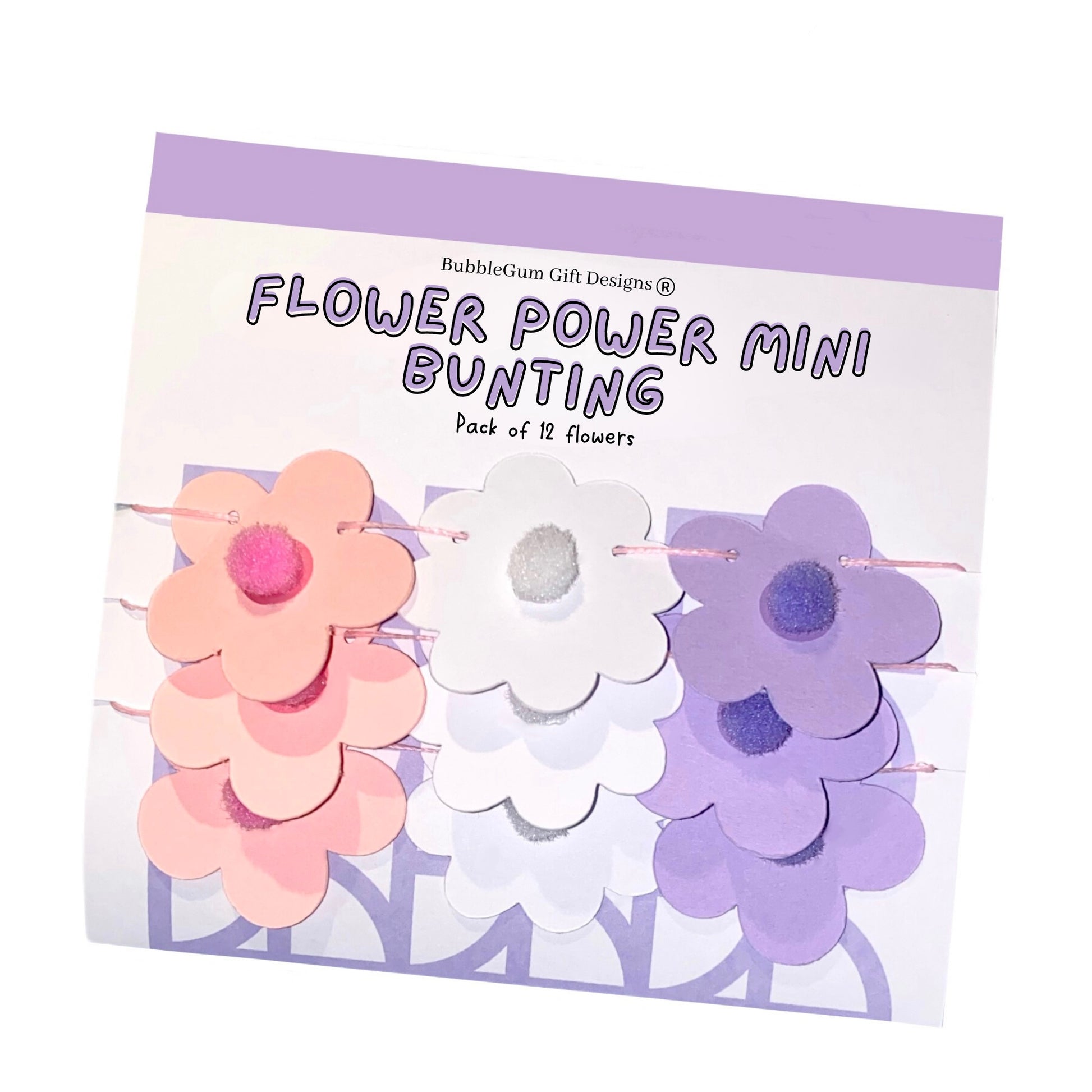 Bring the flower power into full bloom this spring with this groovy 70s-inspired mini flower garland! Featuring a joyful mix of pink, purple, and white daisy and pansy-style blooms, this handmade bunting adds a retro twist to your seasonal decor. Each flower is crafted from premium recycled cardstock and topped with a soft pom pom centre—perfect for adding playful charm to your walls, doors, or shelves.