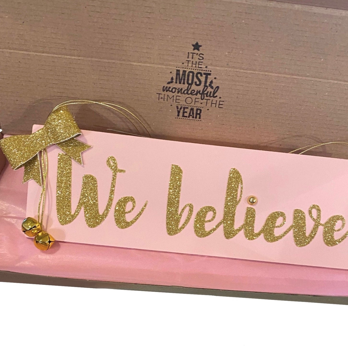 Christmas sign decoration Christmas gift pink and gold Christmas decoration We believe sign Unique Christmas pink shabby chic